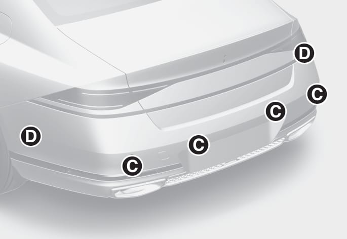 범퍼 높이 변경 등 초음파센서의 장착 상태가 차량 출고 시와 달라지거나, 초음파센서의 감지 영역에 장식물을 붙인 경우에는 원격 스마트 주차 보조가 오작동할 수 있습니다.