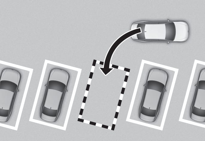 스마트 주차와 원격 스마트 주차 기능은 직각 후진 주차, 평행 후진 주차, 후진 사선 주차를 도와줍니다.