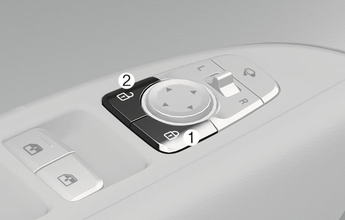 운전석에 있는 잠금 해제 버튼(2)을 누르면 모든 도어가 잠금 해제됩니다.