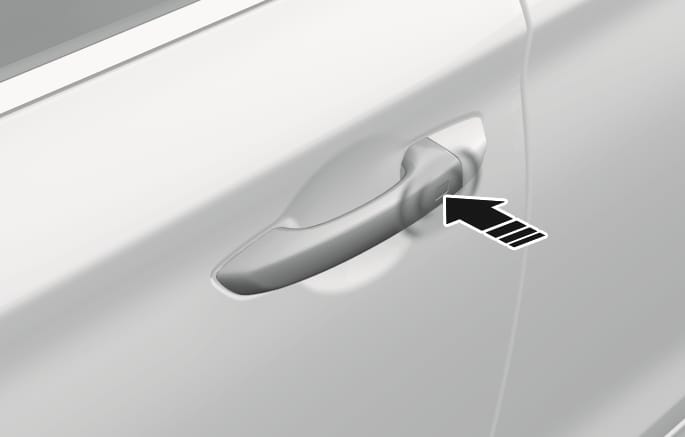 이때, 스마트 키를 휴대하여도 도어 손잡이 센서 인식에 의한 도어 잠금 및 도어 잠금 해제가 되지 않습니다.