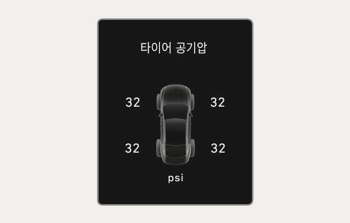 인포테인먼트 시스템의 설정 메뉴에서 타이어 공기압 단위를 변경할 수 있습니다.