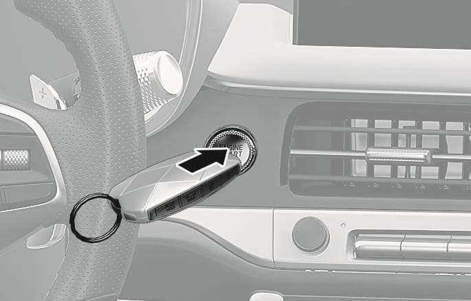 스마트 키의 배터리가 약하거나 고장으로 인하여 시동이 걸리지 않을 때는 스마트 키로 직접 시동 버튼을 누르십시오.