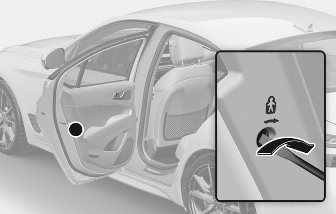 The child safety lock is located on the edge of each rear door. When the child safety lock is in the lock position, the rear door does not open if the inner door handle is pulled.