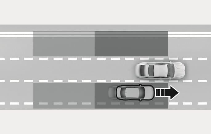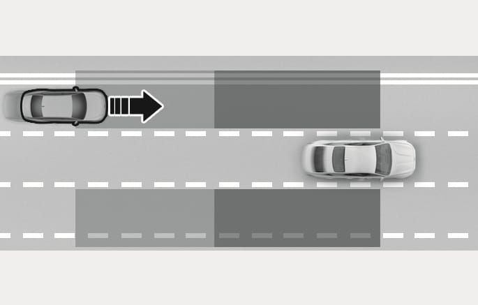 The detecting range may vary depending on the speed of your vehicle. Even if there is a vehicle in the blind spot area, Blind-Spot Collision-Avoidance Assist may not warn you when you pass by at high speeds.