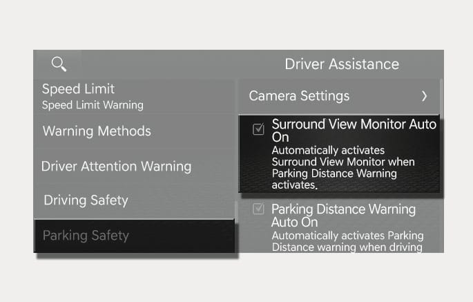 If Parking Safety Priority is enabled, the vehicle lowers all other audio volumes when Surround View Monitor is operating.