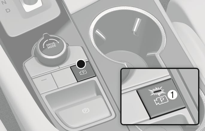 The Parking/View button (1) is pressed, while the gear is in N (Neutral) or D (Drive), and vehicle speed is 6 mph (10 km/h) or less.