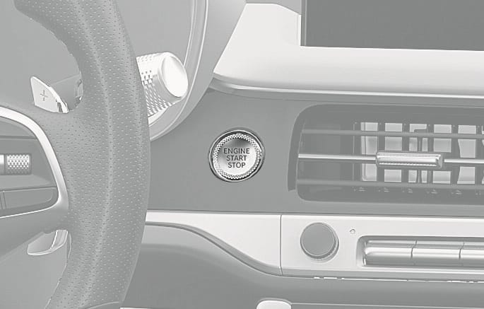 Before leaving the driver's seat, always make sure the gear is in the P (Park) position, apply the parking brake, press the Engine Start/Stop button to the OFF position, and take the smart key with you. Unexpected vehicle movement may occur if these precautions are not followed.