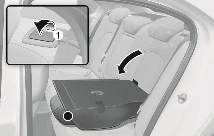 Fold the rear seats using the seatback folding lever (1).