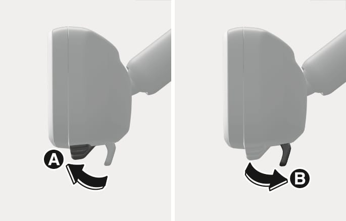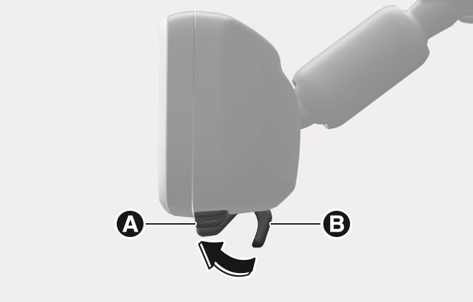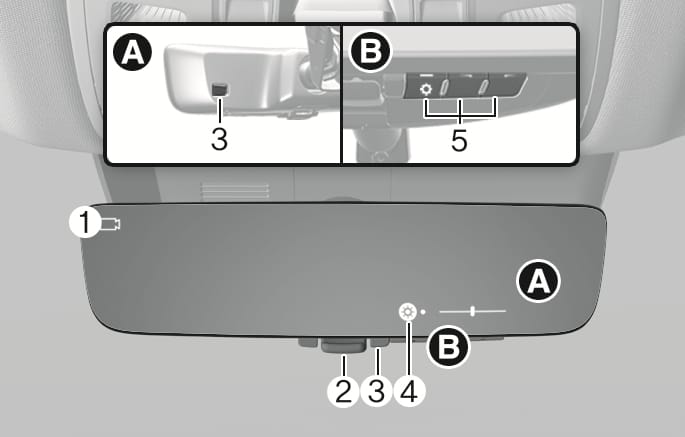 Press the Engine Start/Stop button to the ON or START position and pull the lever towards you to use the digital centre mirror mode [A].