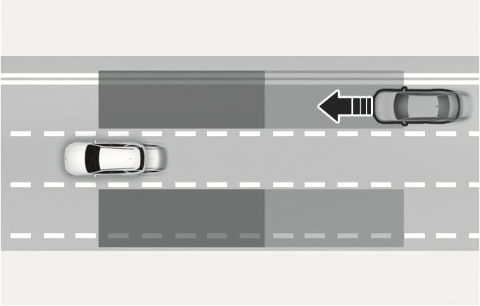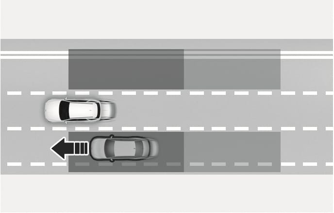 The detection range may differ depending on the speed of your vehicle. Vehicles in the blind spot area may not be detected by Blind-Spot Collision-Avoidance Assist when you pass other vehicles at high speeds.