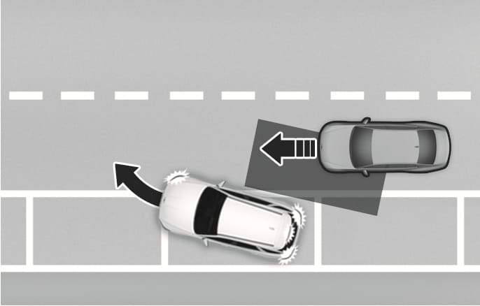 If there is a collision risk when exiting a parallel space, Blind-Spot Collision-Avoidance Assist may assist with braking your vehicle to help avoid a collision.