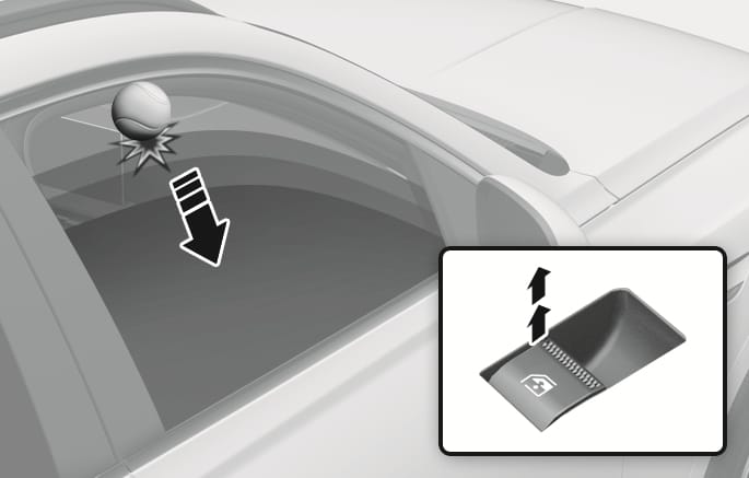 If a window senses any obstacle while it is closing automatically, it stops and lowers about 12 in. (30 cm) to allow the object to be cleared.